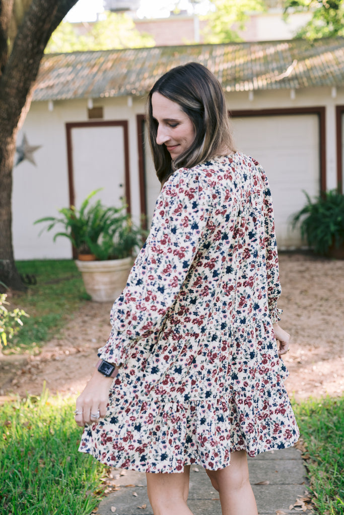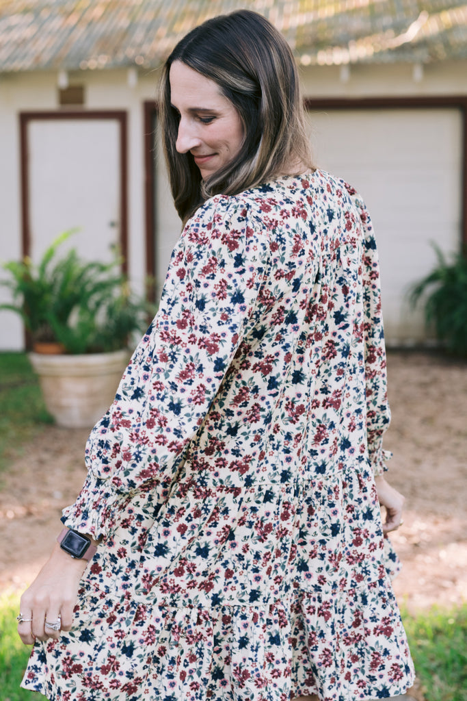 The Bree Oatmeal Floral Corduroy Dress is your new favorite playful pick! With a sweet v-neck and smocked long sleeves, this tiered dress blends cozy corduroy with a delicate floral print. Plus, handy pockets add a dash of practicality to this effortlessly charming look.
