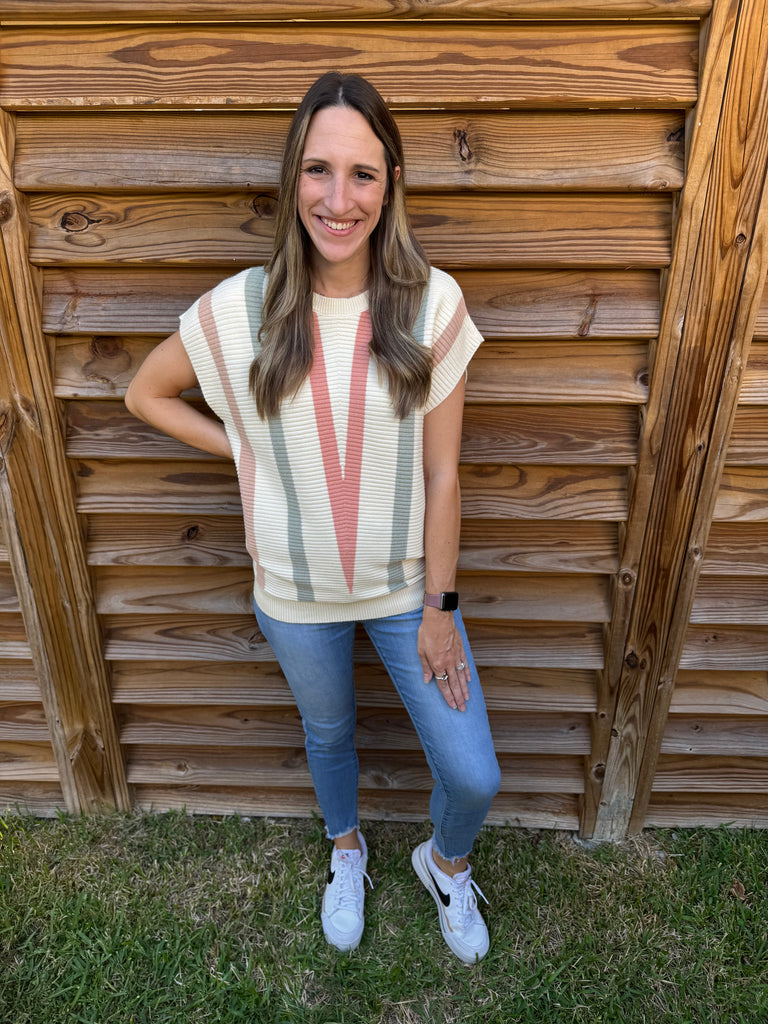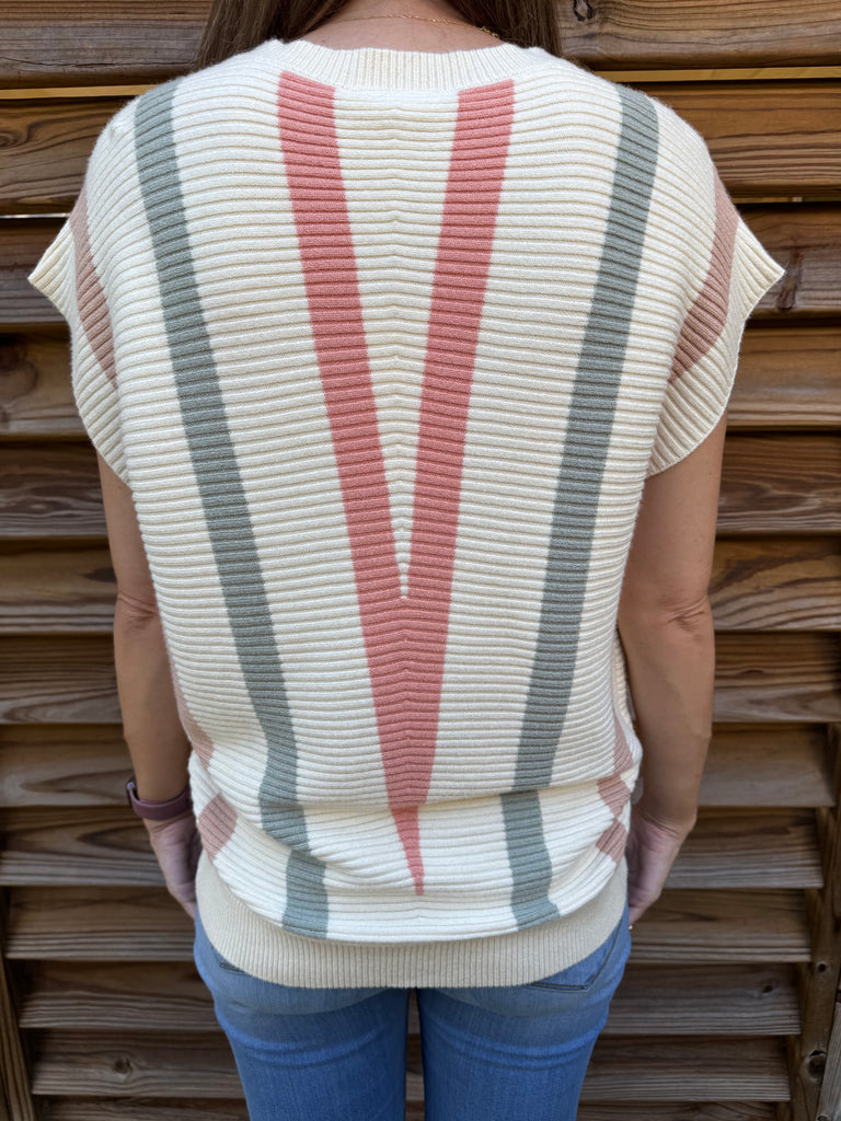 Wrap yourself in whimsical warmth with this ivory short sleeve sweater, featuring playful chevron details that add a fun twist to your cozy look. Perfect for layering or wearing on its own, it’s your new go-to for comfort with a dash of cheerful style!