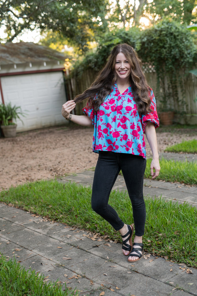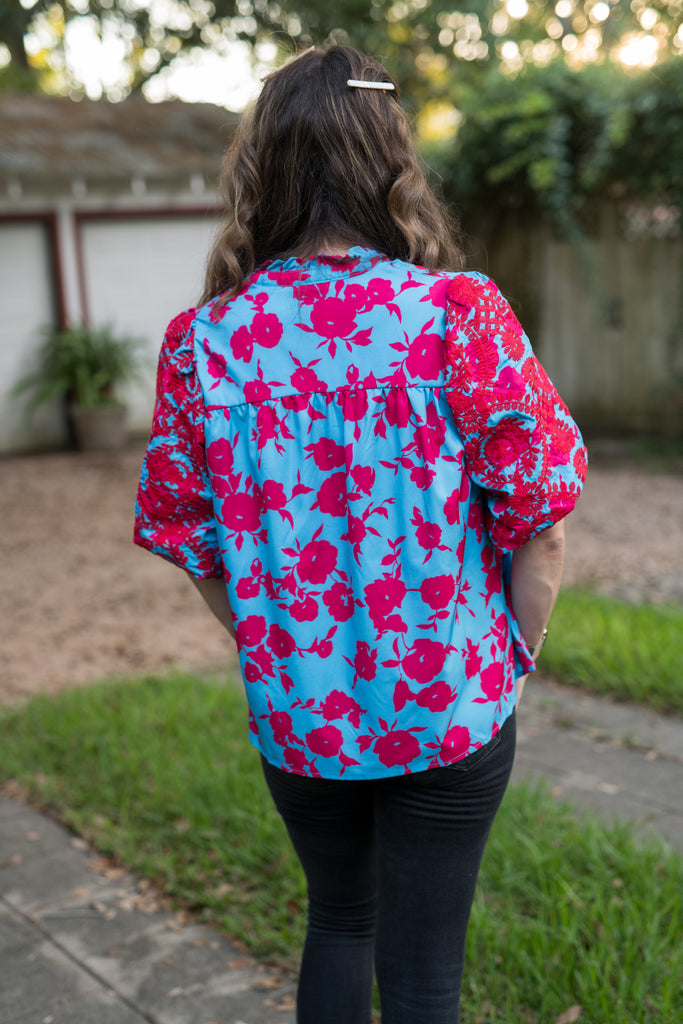 Make a statement with this vibrant blue and red blouse that's bursting with personality! The delicate floral embroidery adds an artistic flair, while the charming puff sleeves bring a playful, romantic vibe to any outfit. Perfect for those who want to express their fun side without compromising on style. This blouse is your ticket to turning heads and spreading smiles wherever you go!