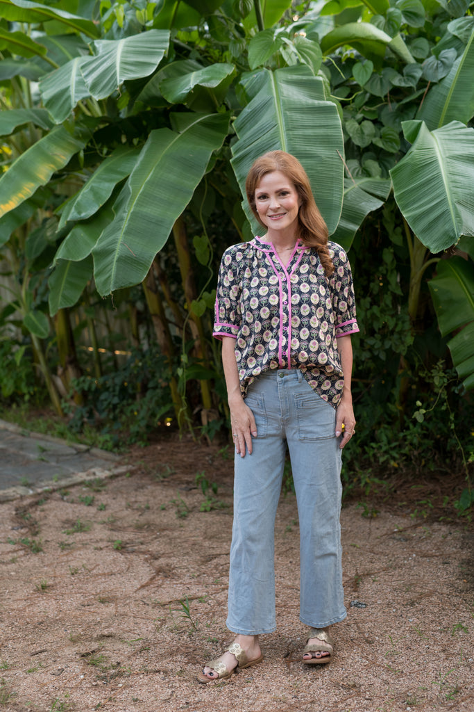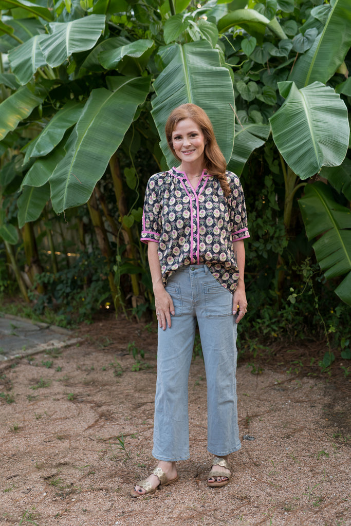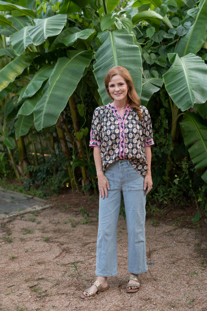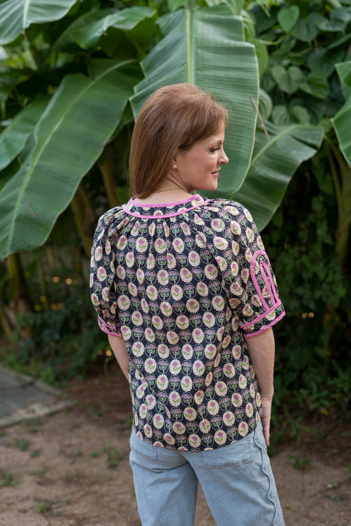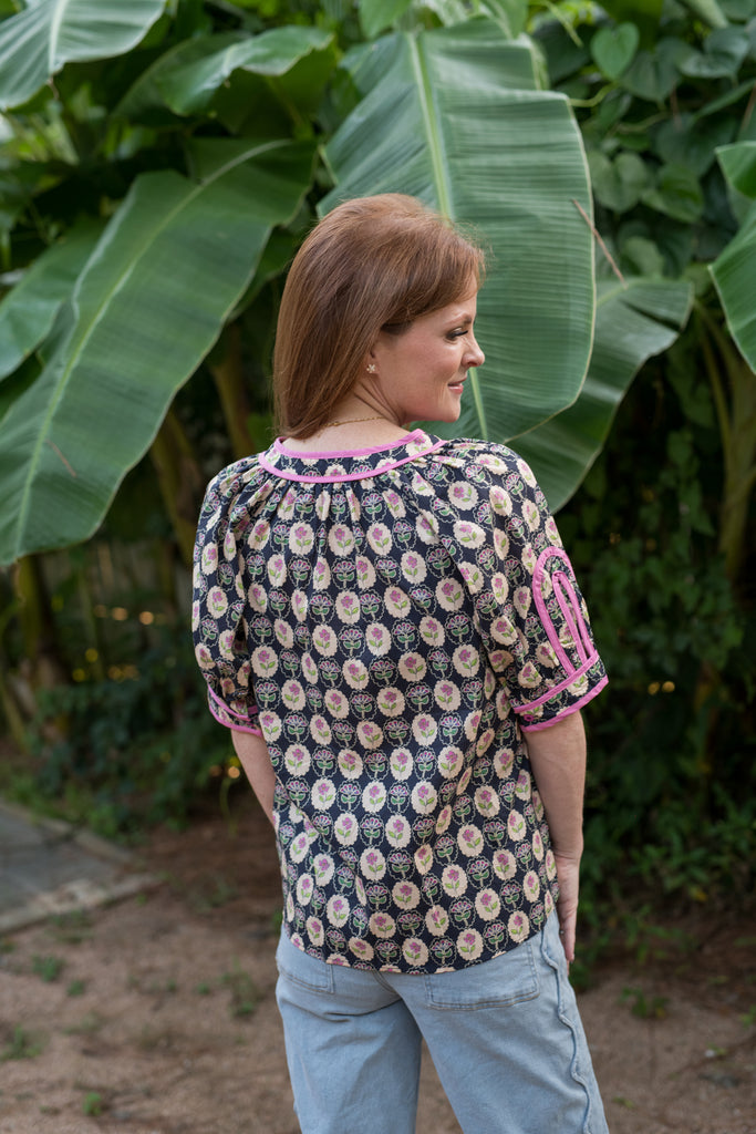 Introducing The Sarah—your new go-to blouse for effortless style! This lightweight beauty features a charming navy and pink floral print that's perfect for mixing into your everyday wardrobe. The classic button-down design makes it incredibly versatile, whether you're dressing it up for brunch or keeping it casual with your favorite jeans. Soft, breathable fabric keeps you comfortable all day long, while the timeless floral pattern adds just the right touch of personality. A wardrobe essential that feels as good as it looks!