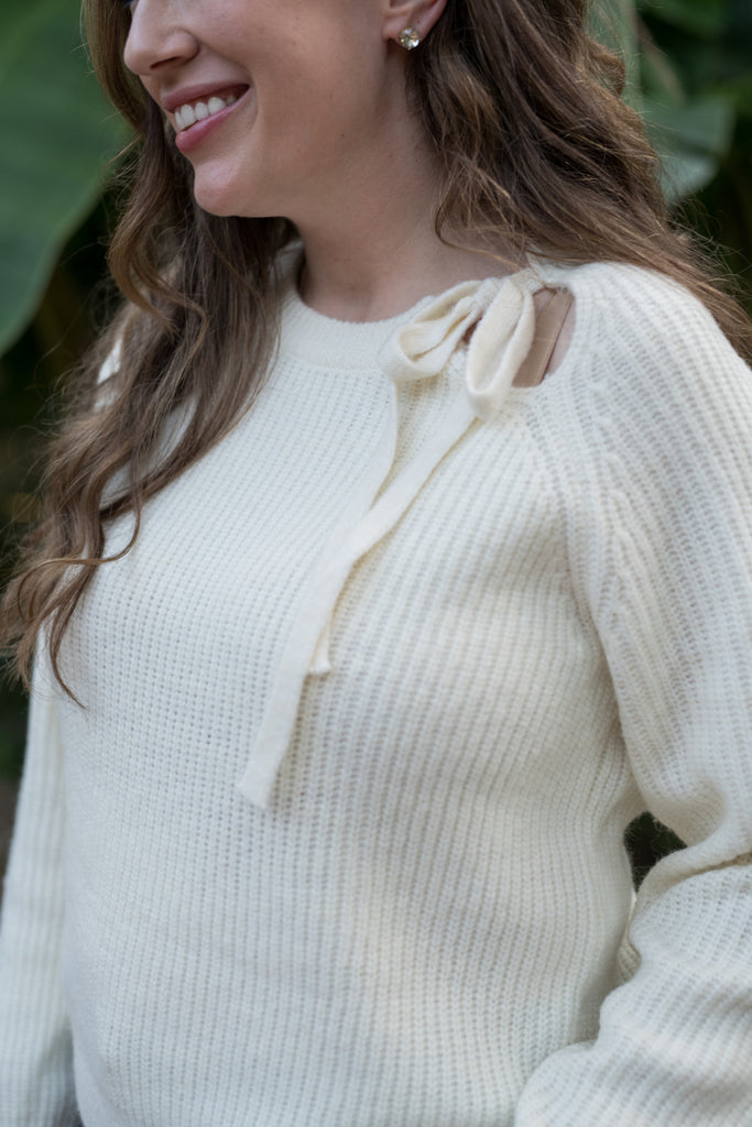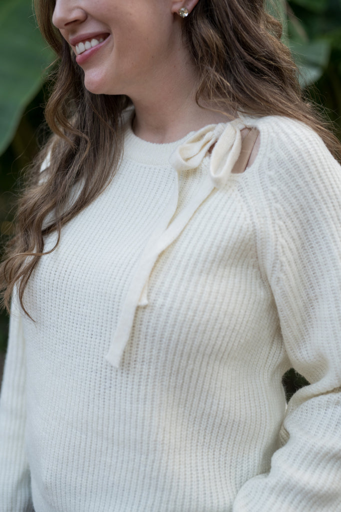 The Simone Ivory Cutout Tie Sweater - Ivory
